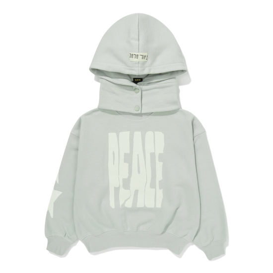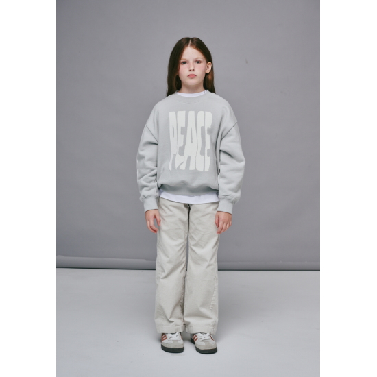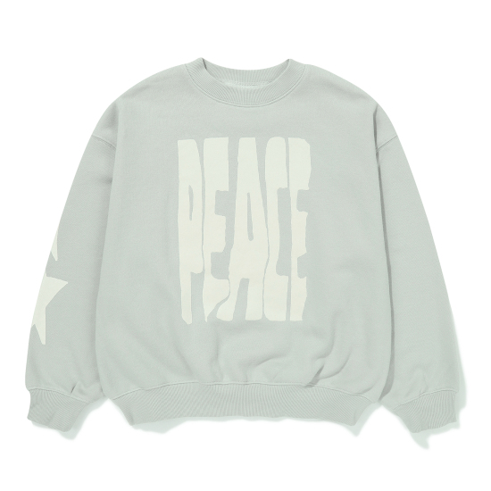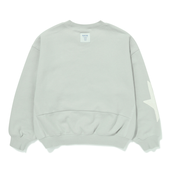 소프트한 라이트 그레이컬러의 세미 크롭 스웻셔츠입니다. 떨어진 어깨와 박시한 상동으로 몸판밑단과 소매밑단은 립으로 모아 볼륨감을 준 스타일입니다. 뒤쪽에 절개가 있어서 뒤가 살짝 쳐져 볼륨감 있는 귀여운 핏을 연출할 수 있습니다. 앞판에 빈티지한 감성의 레터링(피스)을 후로킹 나염과 소매에 아이보리 컬러의 별 나염으로 포인트를 주었습니다. AZI2AH01LG 져지 바라클라바와 셋업으로 다양한 연출이 가능합니다.