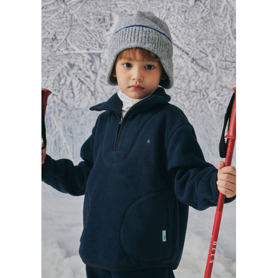 따뜻하고 부드러운 플리스 소재의 긴소매 반집업 티셔츠입니다. 부드럽고 포근한 느낌의 소재로 제안하여 편안하게 착용할 수 있고 이너로 풀오버를 입고 카라를 집업하여 세련된 느낌으로 연출할 수 있습니다. 아이보리 컬러의 패딩 팬츠나 네이비 컬러의 플리스 팬츠와 셋업으로 같이 편안하고 스포티한 느낌의 겨울 캐주얼로 매칭하여 제안하면 좋습니다.