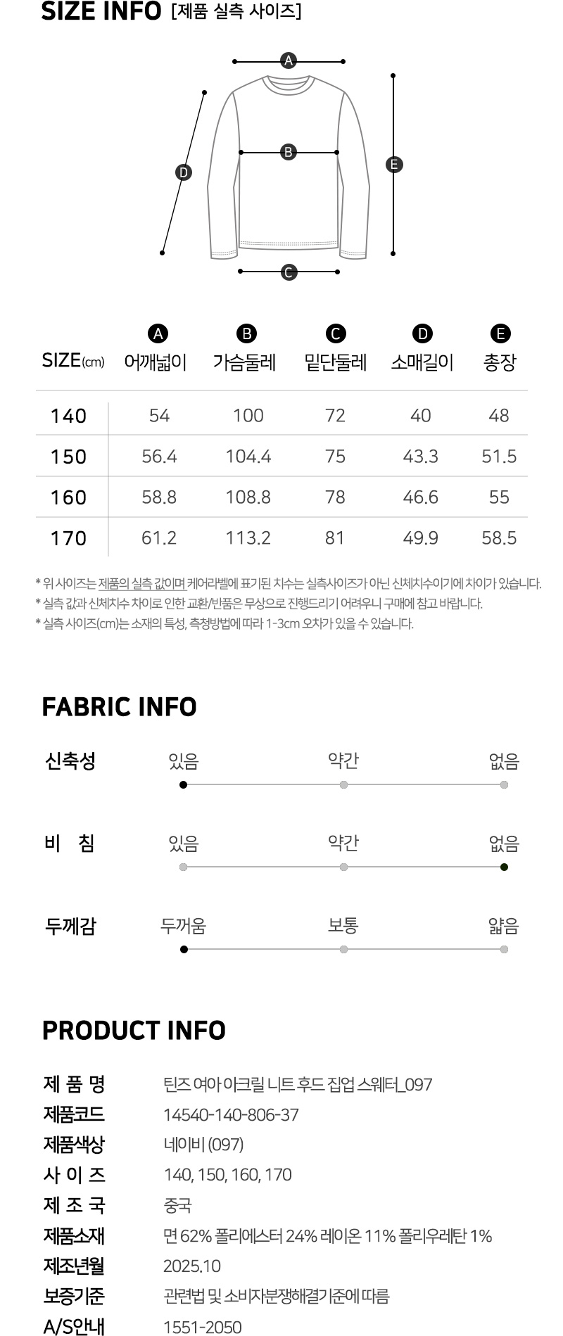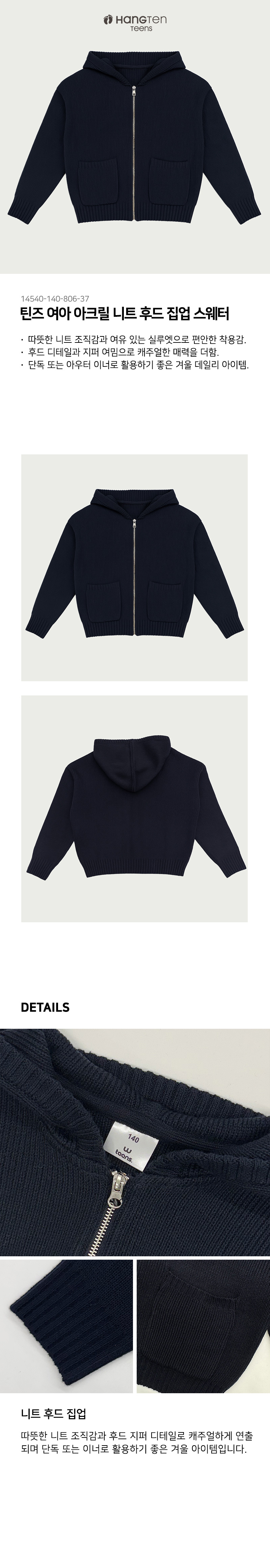 (현대Hmall)행텐틴즈 여아 아크릴 니트 후드 집업 스웨터_097(14540-140-806-37)