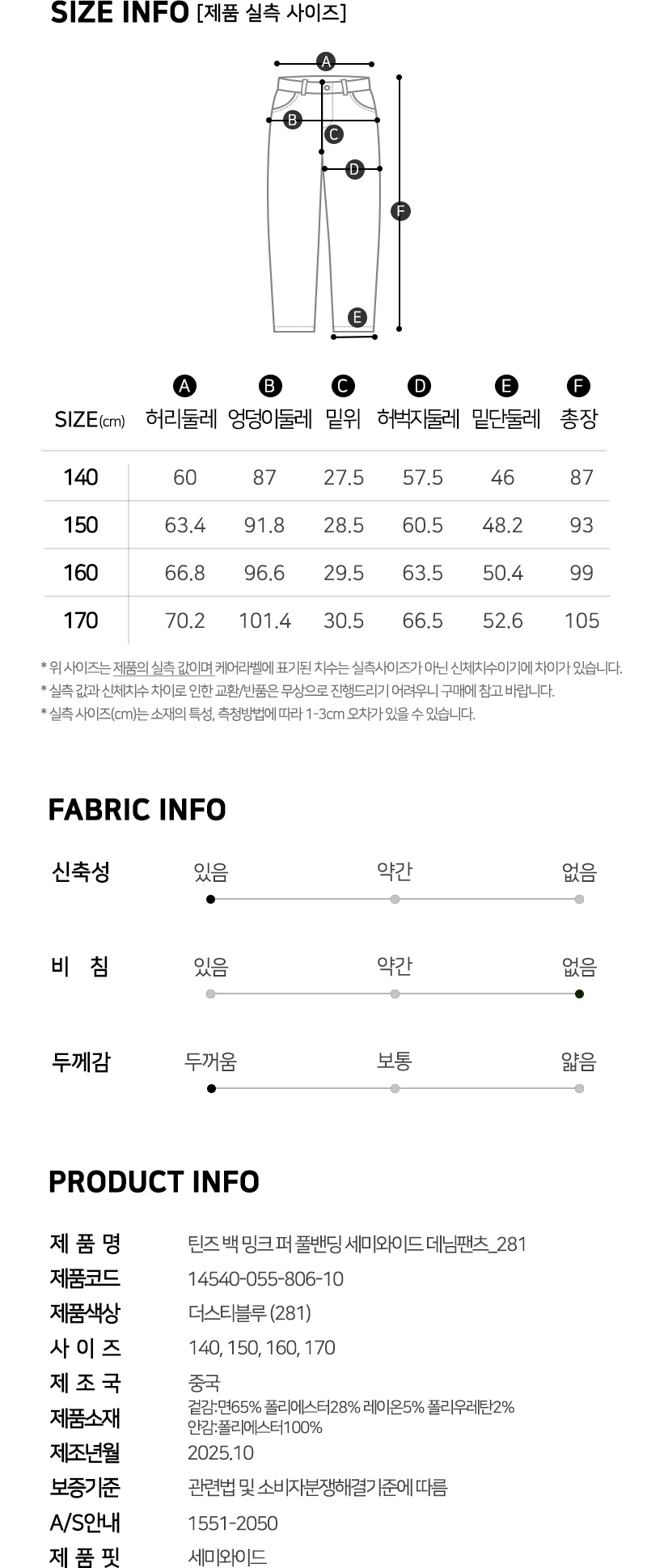 행텐틴즈 백 밍크 퍼 풀밴딩 세미와이드 데님팬츠_281(14540-055-806-10)