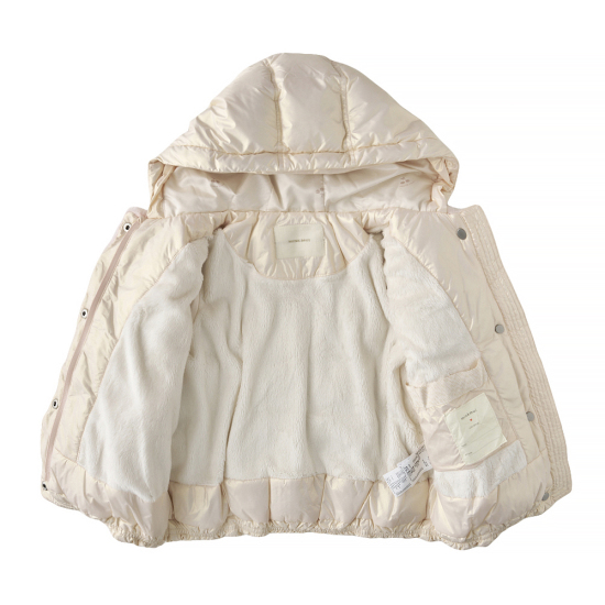 은은한 펄감의 샤이닝 핑크 다운 점퍼입니다. 주머니의 리본 디테일로 포인트를 주었으며 후드와 퍼트리밍 탈부착이 가능하며 다양한 스타일을 연출할 수 있습니다. 부드러운 벨보아 안감으로 보온성을 높인 아이템입니다.