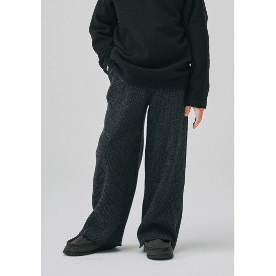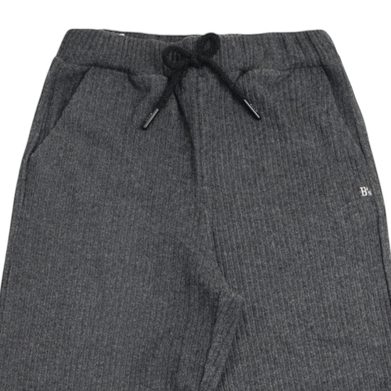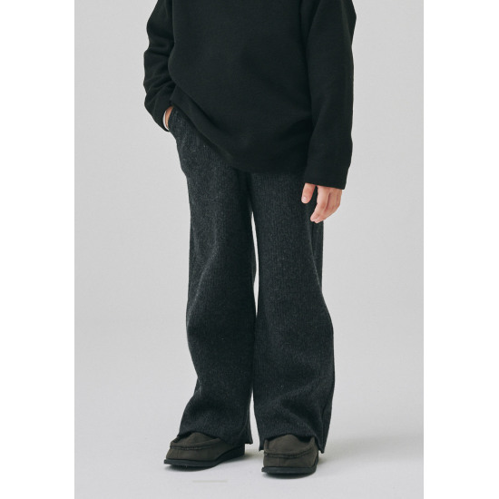 골지 소재의 편안한 일자 차콜 그레이 팬츠입니다. 밑단의 고급스러운 인타록 디테일이 살짝 와이드하게 떨어지면서 다리를 더 길어보이게 해주는 아이템입니다. 같은 소재, 컬러의 차콜 그레이 티셔츠와 함께 셋업으로 입고 라이트 베이지 롱다운 점퍼, 네이비 롱 다운 점퍼 등과 함께 매치하여 세련된 여아 스타일링을 제안할 수 있습니다.