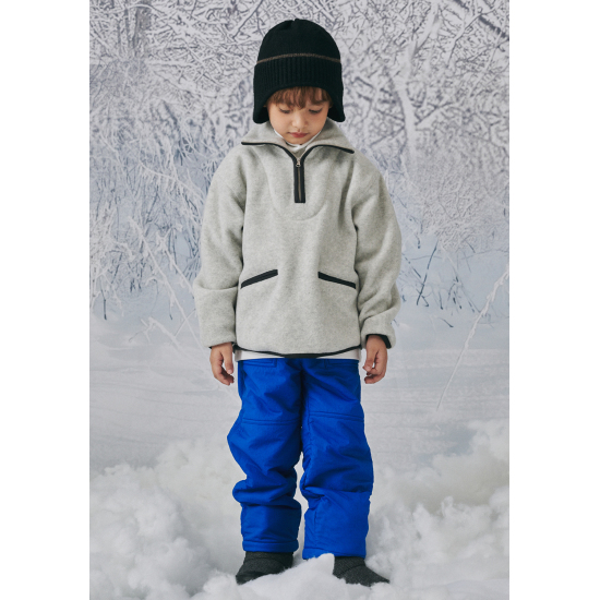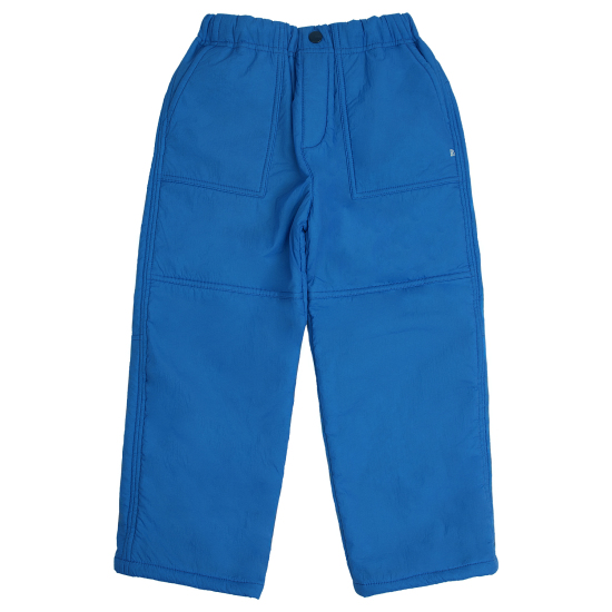 플리스 안감의 이중겹바지 아이템으로 따뜻하고 편안하게 착용할 수 있는 세련된 블루 화섬 팬츠입니다. 생활방수 소재로 제안하여 눈이오는 계절에도 활용도가 좋으며, 가볍고 부드러운 촉감으로 착용할 수 있습니다. 밑단을 스트링으로 조절할 수 있게 제안하였으며, 플리스 집업 티셔츠, 풀오버 티셔츠와 자카드 점퍼와 함께 연출하면 겨울 시즌의 스포티한 느낌을 스타일리쉬하게 연출할 수 있습니다.