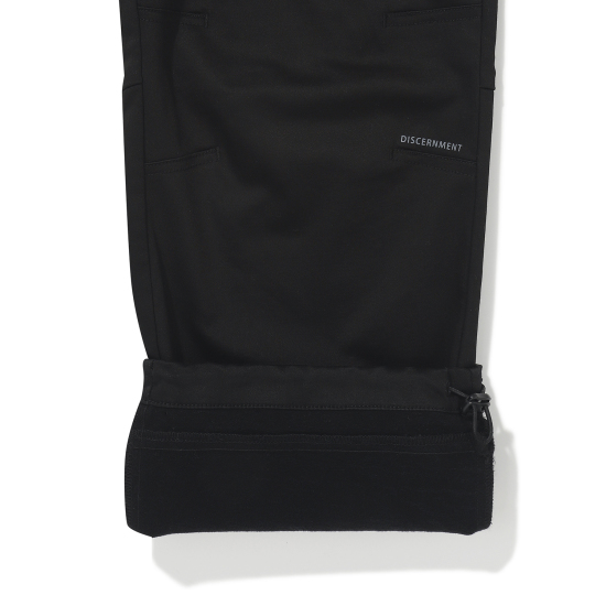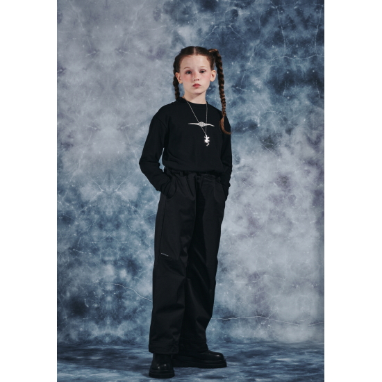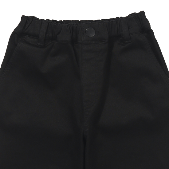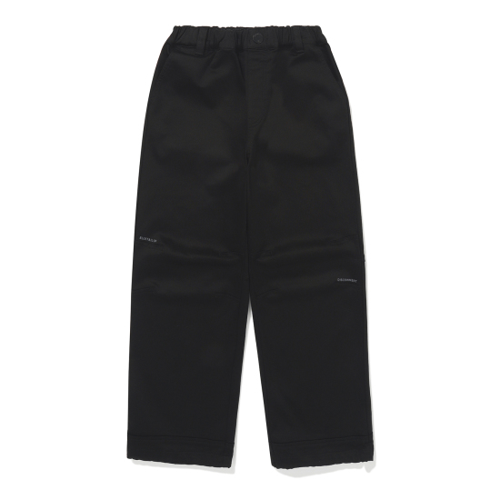 블랙 컬러의 면스판 기모 원단으로 제안한 워커 스타일 와이드 우븐 팬츠입니다. 신축성이 좋고 터치감이 부드러워 겨울에 편안하게 착용하기 좋습니다. 밑단 안쪽에 스트링을 넣어 조거로도 연출할 수 있습니다. 무릎 앞부분에 다트를 주고 무릎 뒤 절개가 있어 착용 시 입체적인 핏이 멋스러운 상품입니다. 나염, 자수, 라벨로 컬러 포인트를 주었습니다.