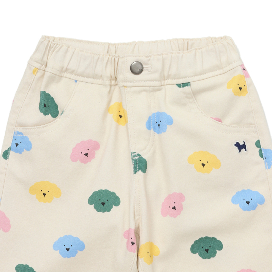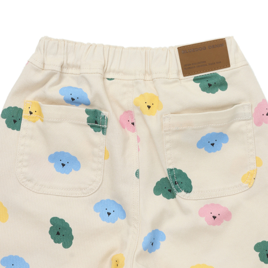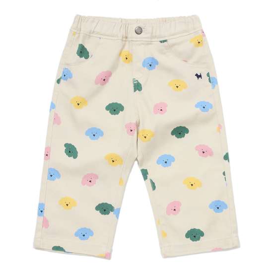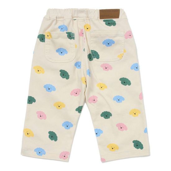와이드한 일자 핏의 우븐 팬츠입니다. 블루독베이비의 시그니처인 구름도기비틀어 짜지 마시오, 삶지마시고 단독 손세탁하여 주십시오, 세제에 30분 이상 담가두지 마시고 세탁 후 바로 건조하여 주십시오,