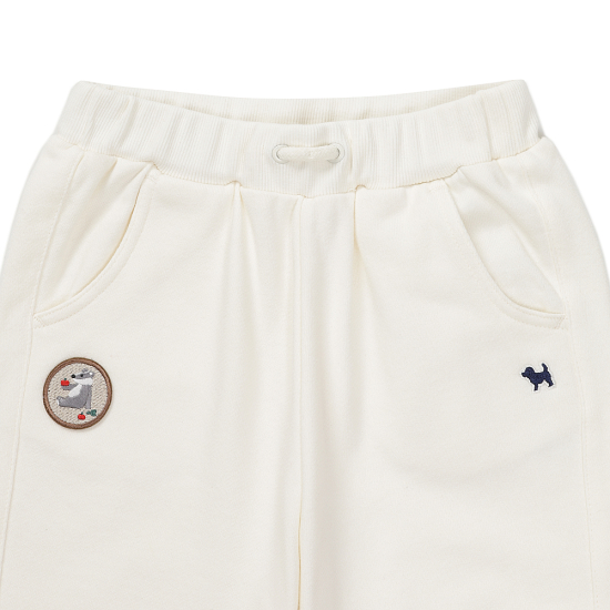 귀여운 동물 와펜으로 포인트를주었으며 원단의 겉에 약간의 피치가공이 되어있어