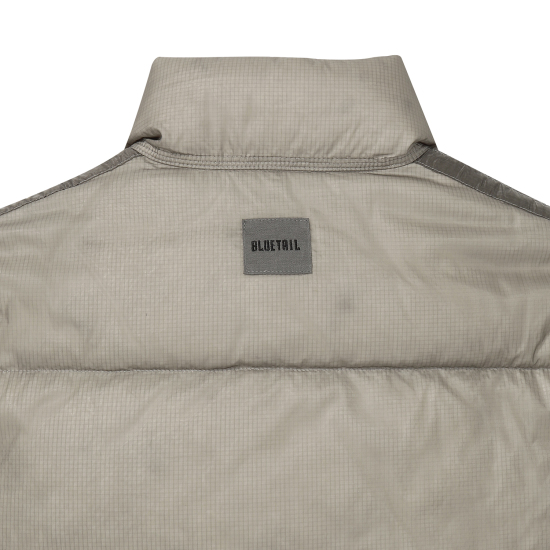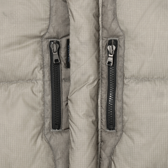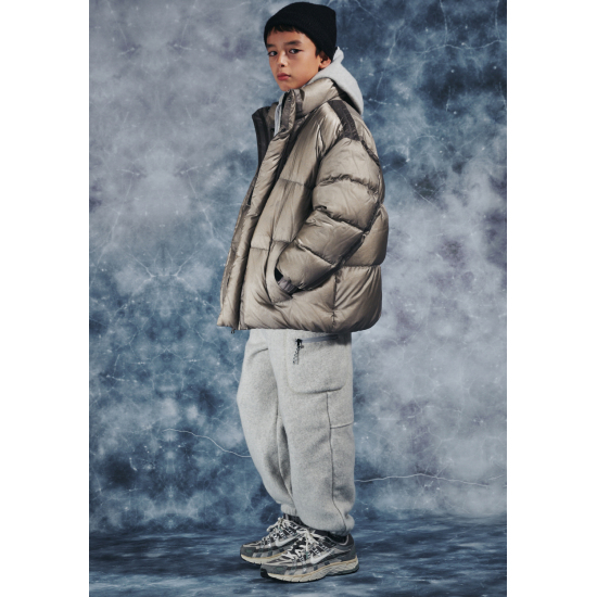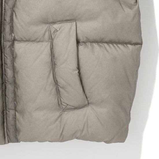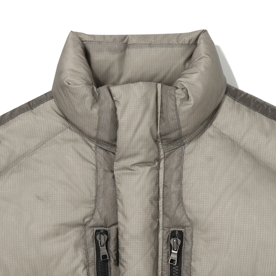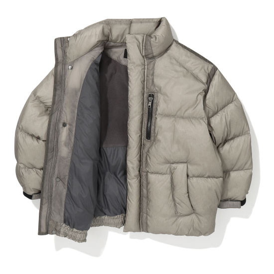 가벼운 립스탑 소재의 베이지 컬러 다운 점퍼입니다. 오리털(솜털80, 깃털20) 충전재로 보온성이 높으며 가벼운 착용감이 특징입니다. 절개 라인을 따라 원단을 덧대어 프로텍티브한 무드로 제안한 디자인으로 풍성한 볼륨감이 매력적인 상품입니다. 밑단을 이밴드 처리해 볼륨감 있는 디자인으로 제안했으며,후드 입구와 밑단을 안쪽 엘라스트링으로 조여 둘레 조절이 가능하도록 제안했습니다. 안쪽 등은 플리스 배색을 사용해 보온성을 주었습니다. 컬러감 있는 테이프와 배색 안감들을 사용해 컬러 포인트를 더했습니다.
