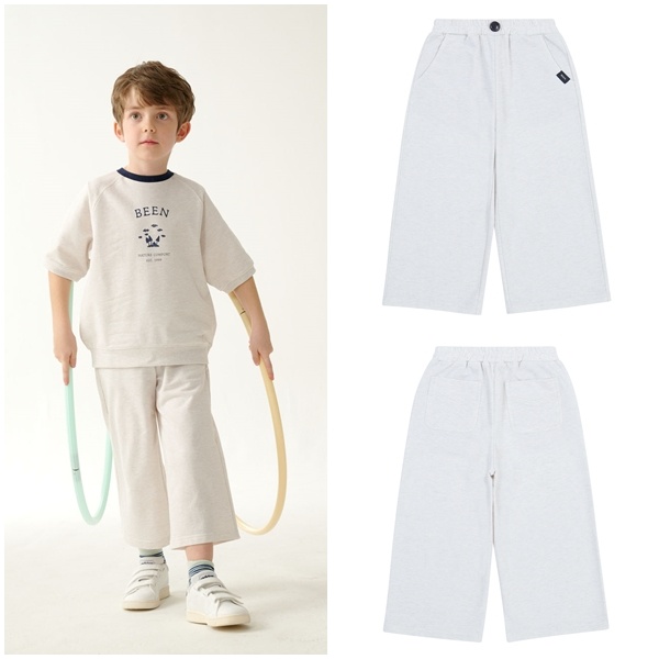 아이보리 멜란지 컬러의 일자 다이마루 팬츠입니다. 편안하고 깔끔하게 떨어지는 일자 라인으로 남아, 여아 모두에게 제안할 수 있는 아이템입니다. BZ17TS01IV와 셋업으로 코디할 수 있으며, 편안하면서 캐주얼한 분위기로 스타일링할 수 있습니다.