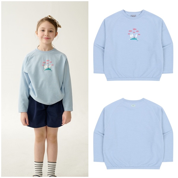 밝고 부드러운 블루 컬러의 가벼운 티셔츠입니다. 편안한 레글런 소매에 밑단을 편안하고 가볍게 모아 내추럴한 실루엣을 연출하기 좋은 아이템입니다. 남아, 여아 모두에게 제안할 수 있는 유니섹스 아이템으로 네이비 반바지 또는 데님팬츠와 코디하여 세련되고 활동적인 스타일링을 연출할 수 있습니다.