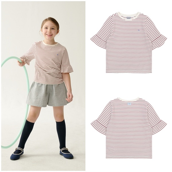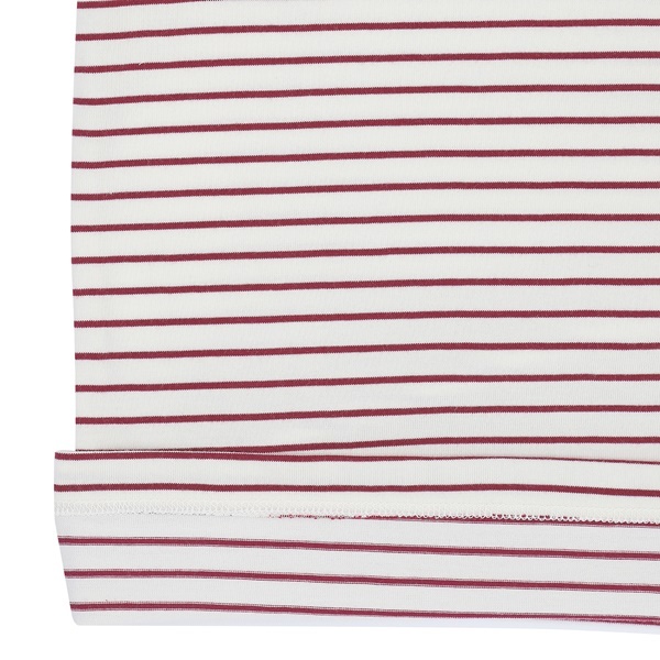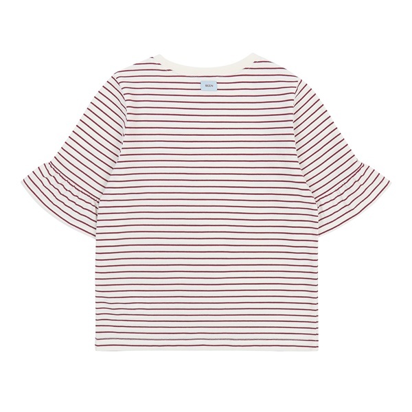 레드 컬러로 제안하는 스트라이프 티셔츠입니다. 팔꿈치를 덮는 기장감으로 몸에 잘 맞는 여성스럽고 발랄한 라인을 연출하였습니다. BZ18PT01GY와 함께 코디하여 캐주얼하면서 발랄한 느낌으로 스타일링할 수 있습니다.