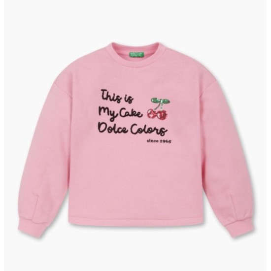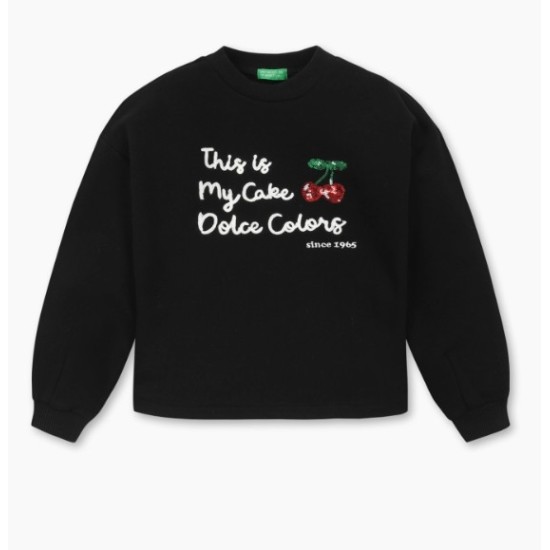 체리 스팽글로 발랄한 포인트를 더해준 맨투맨.