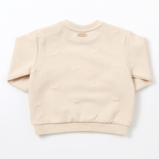 상의 전면에 돋보이는 귀여운 말 모티브와 감성적인 자수 디테일로  고급스러움을 살렸으며