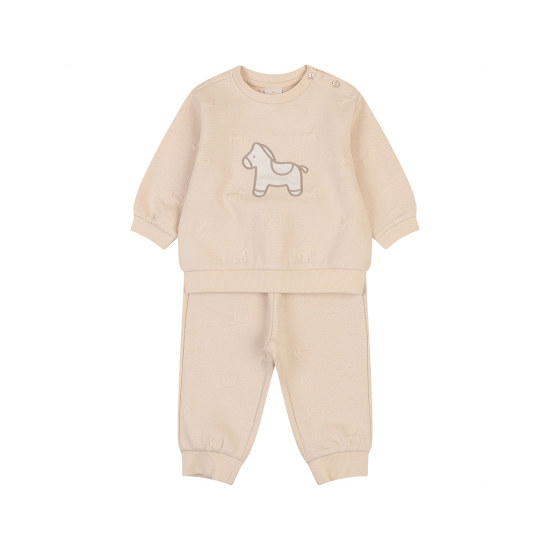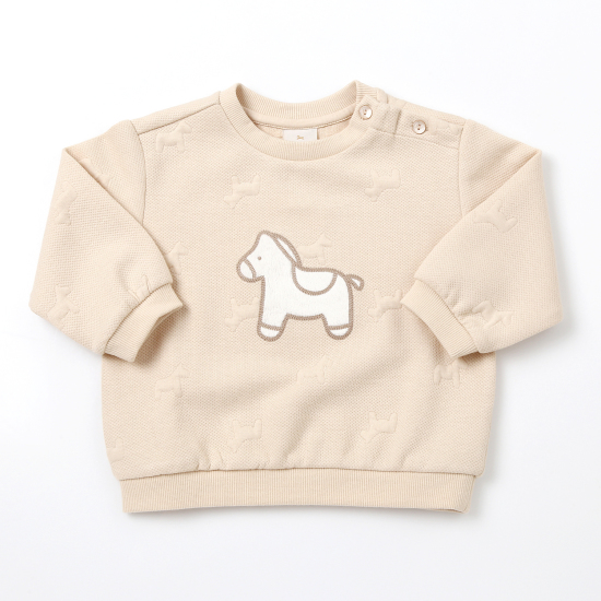 상의 전면에 돋보이는 귀여운 말 모티브와 감성적인 자수 디테일로  고급스러움을 살렸으며
