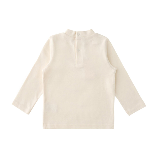후라이스 스판 피치 원단을 사용한 반목 티셔츠 아이템입니다. 앞면에 아미띠에 뮤 로고 자수로 포인트를 주었습니다. 캐주얼하게 입힐 수 있어 아기들에게 선물용으로 좋은 아이템입니다.