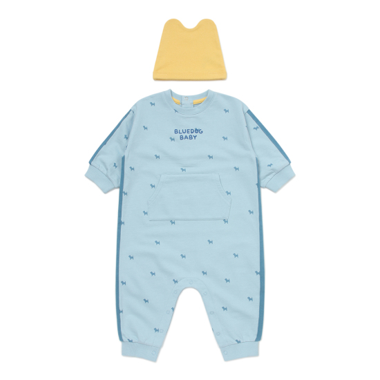BI 로고 플레이 패턴의 우주복 세트 아이템입니다. 활동하기 편한 루즈핏에 배색디테일이 포인트인 우주복 아이