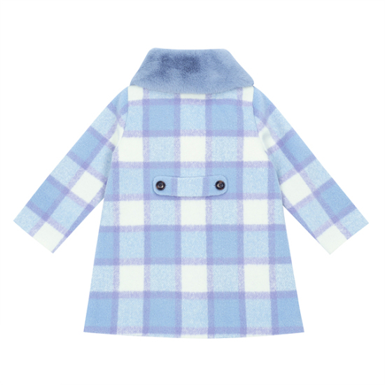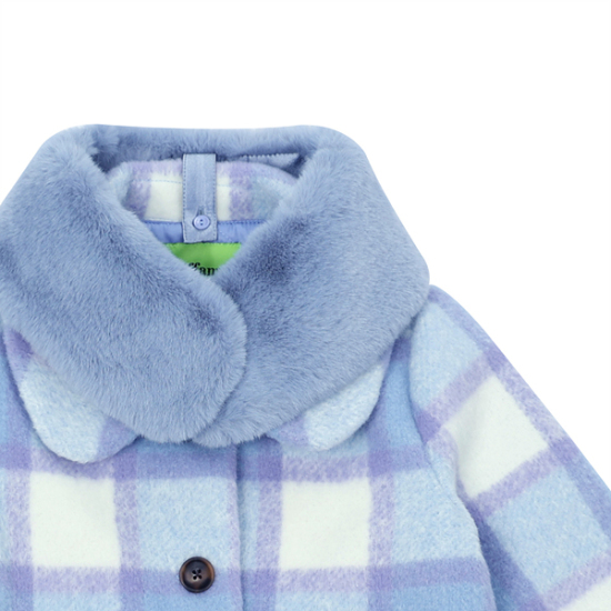 상세설명-포근하고 따뜻한 느낌을주는 느낌의 소재감과 멋스러운 체크 패턴의 코트로 블루 탈부착 털카라달려 더욱더 포근한 느낌을 주는 컬러감이 멋스러운 느낌의 아웃터이다
