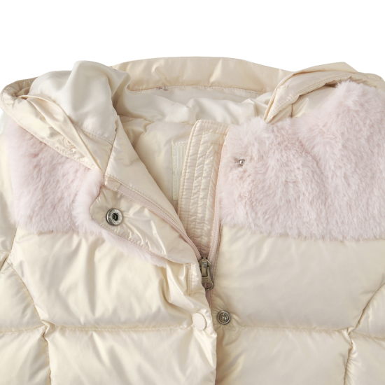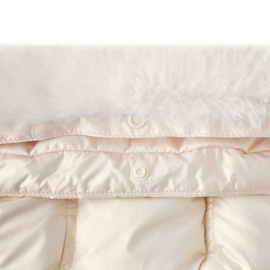 은은한 펄감의 샤이닝 핑크 다운 점퍼입니다. 주머니의 리본 디테일로 포인트를 주었으며 후드와 퍼트리밍 탈부착이 가능하며 다양한 스타일을 연출할 수 있습니다. 부드러운 벨보아 안감으로 보온성을 높인 아이템입니다.