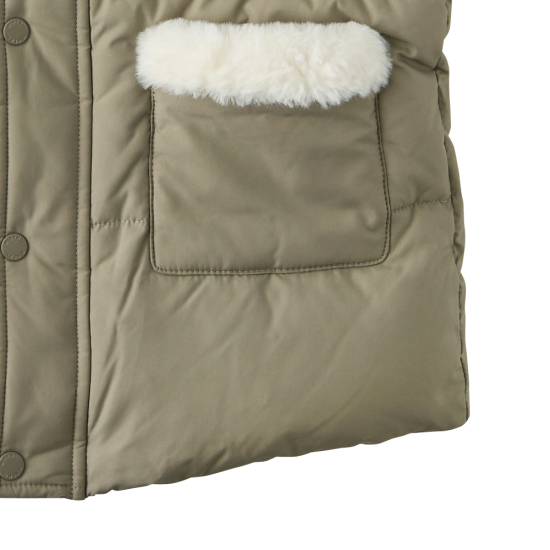 소프트한 카키 컬러의 롱 덕다운 점퍼입니다. 안쪽에 허리 조절이 가능한 스트링이 있어 핏을 다양하게 변화 할 수 있으며 롱한 기장으로 보온성까지 돋보이는 아이템입니다. 퍼 트리밍은 탈부착이 가능하여 두 가지 느낌으로 연출 가능합니다.