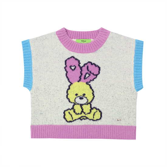 상세설명-토끼 모티브를 자카드로 작업한 니트 VEST입니다. 토끼 모티브와 립단의 배색으로 컬러감을 올린 스타일입니다