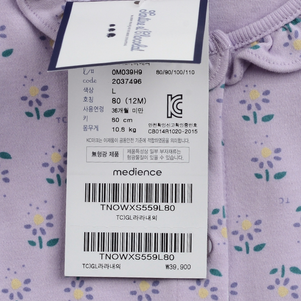 세탁방법 및 취급시 주의사항 : 삶지 마십시오. 기계건조 금지. 주의! 작은 부품이 탈락되면 삼킬 수 있음.