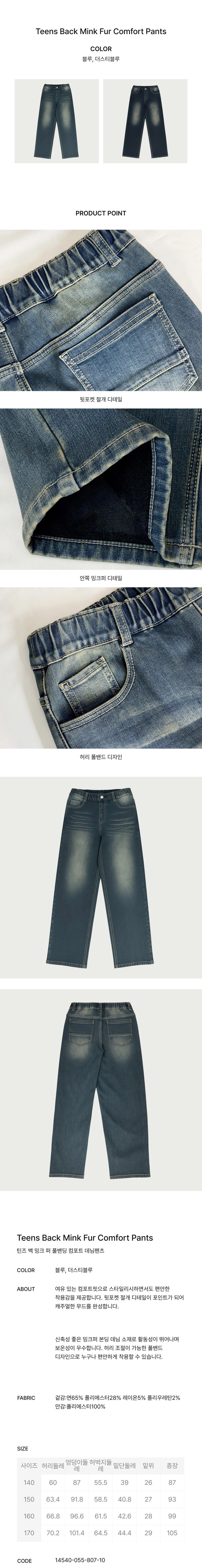 행텐틴즈 백 밍크 퍼 풀밴딩 컴포트 데님팬츠_253(14540-055-807-10)