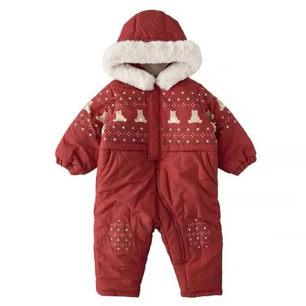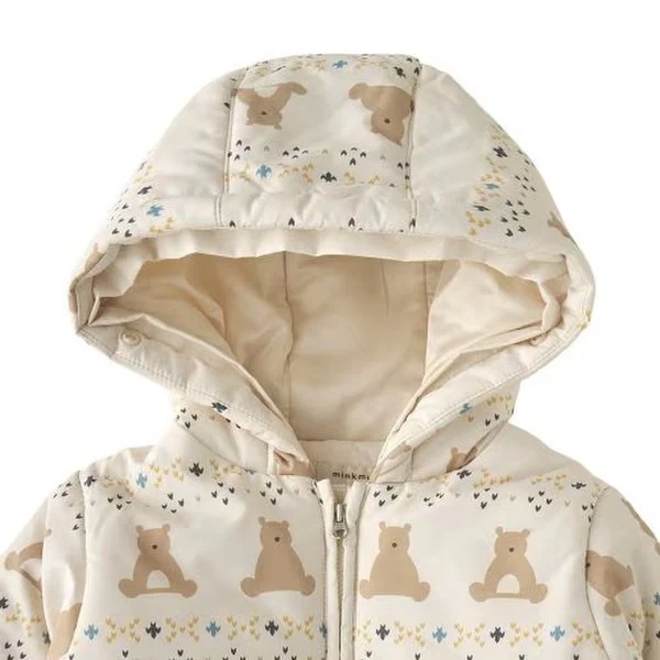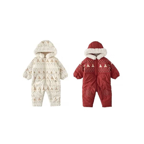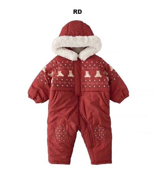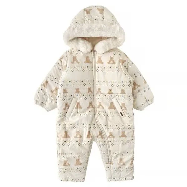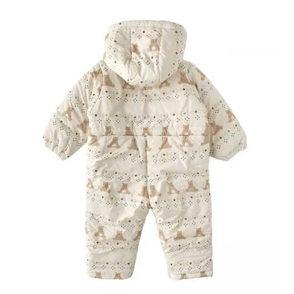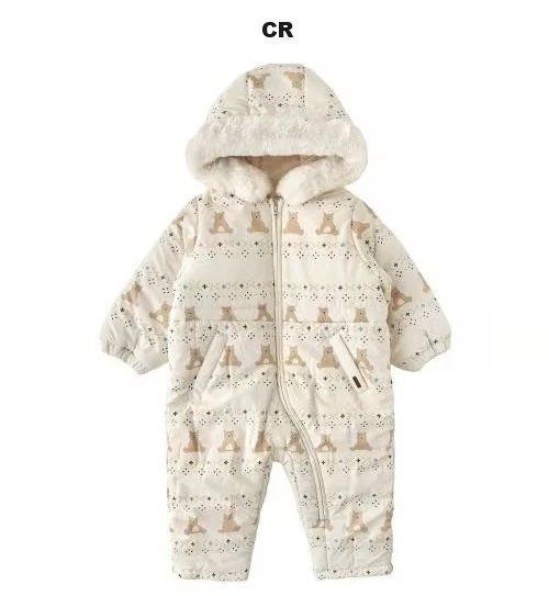 퓨어한 크림 컬러의 패딩스노우 수트입니다. 베베 패턴을 활용하여 귀여움을