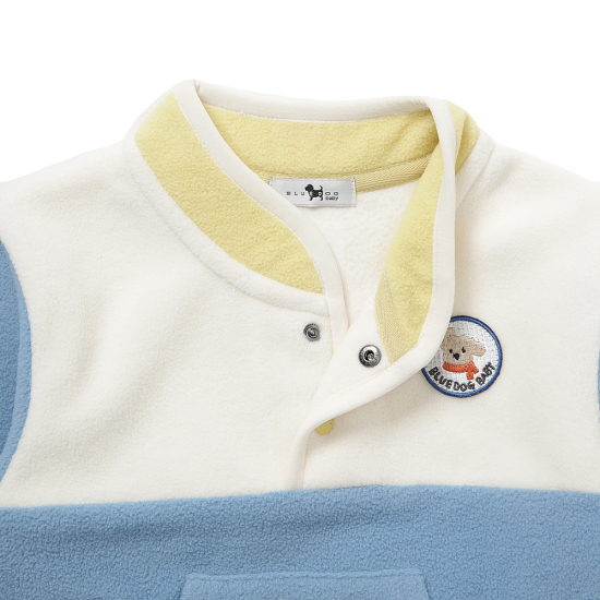 부드럽고 도톰한 양면 플리스 소재에 컬러풀한 배색이 포인트가 되는 상하세트 입니다.