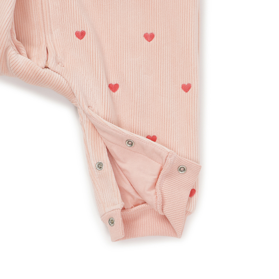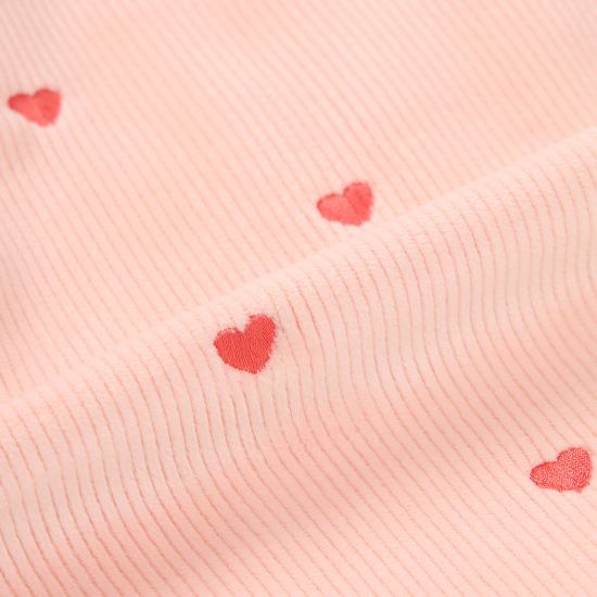 벨로아 원단으로 포근하고 부드러운 착용감을주며, 하트 자수 디테일이 러블리한 무드를 더합니다.