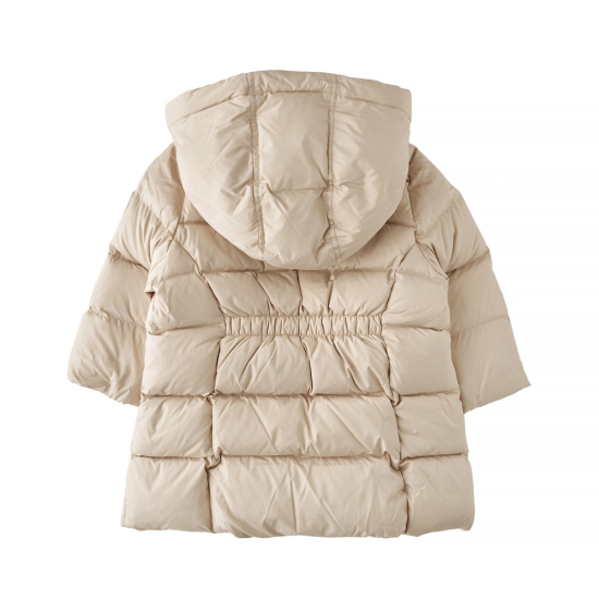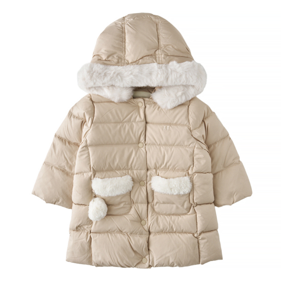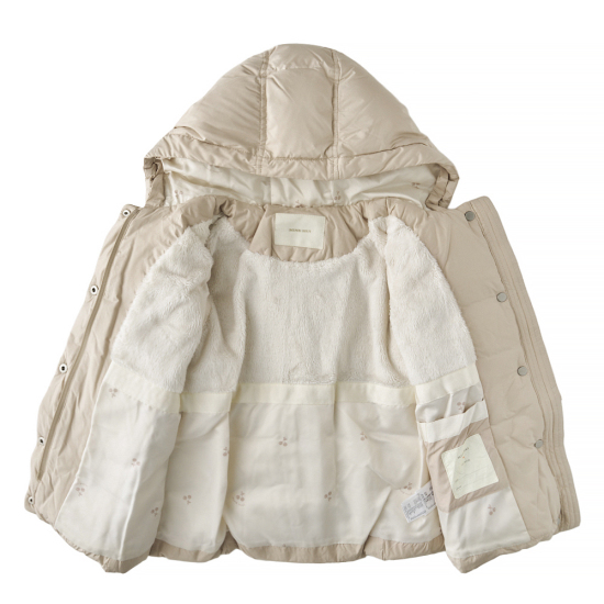 퓨어한 베이지 컬러의 롱다운 점퍼로 앞판의 프린세스 라인 절개가 러블리한 핏을 연출해 줍니다. 포켓에는 퍼 배색과 방울 퍼 장식을 더해 귀여운 포인트를 주었으며 부드러운 밸보아 안감으로 보온성을 높인 아이템입니다.