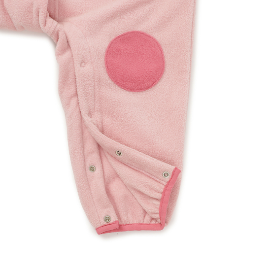 플리스 소재로 제작되어 가볍고 따뜻하며 귀여운 컬러매치 덤블 리버시블쟈켓 세트로 코디 가능합니다.