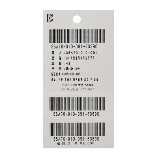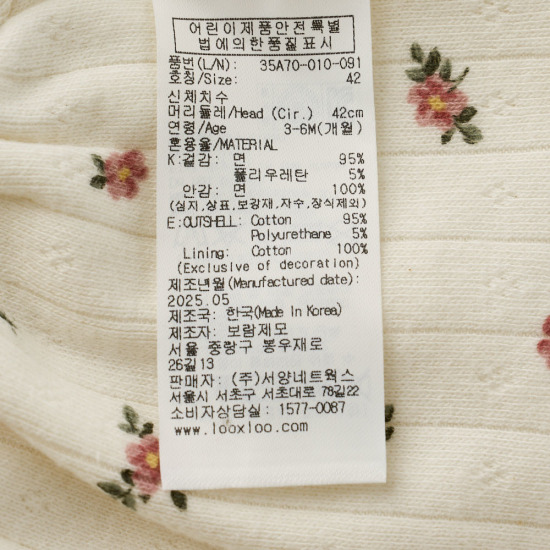 소 재........겉감-면95%,폴리우레탄5% / 안감-면100%