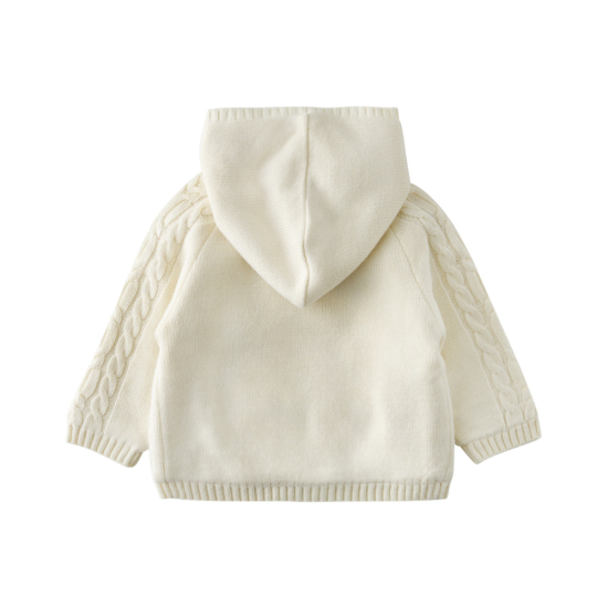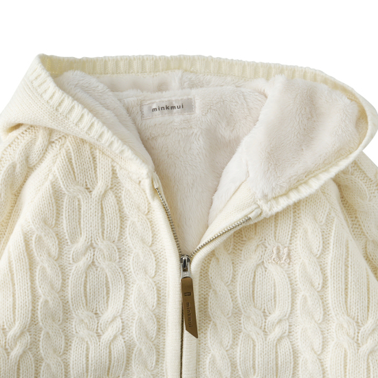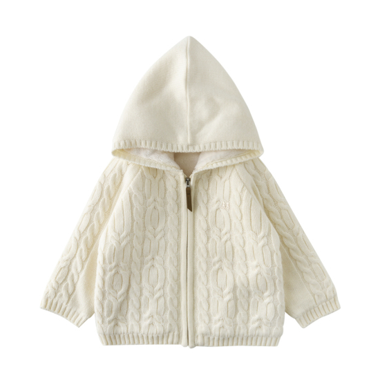 소프트한 크림 컬러의 꽈배기 니트 집업 가디건입니다.