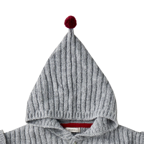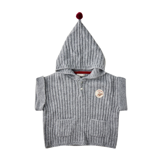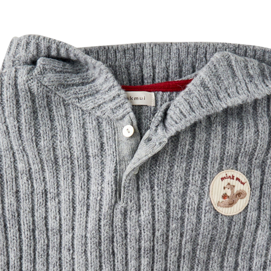 일부 알파카의 원사가 함유되어 고급스러움을 제안하며, 후드에 레드 털방울과 로 미 와펜을 활영하여 귀여운 느낌을 더해주었습니다.