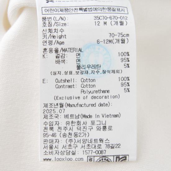 소    재........겉감-면100% / 배색-면95%,폴리우레탄5%