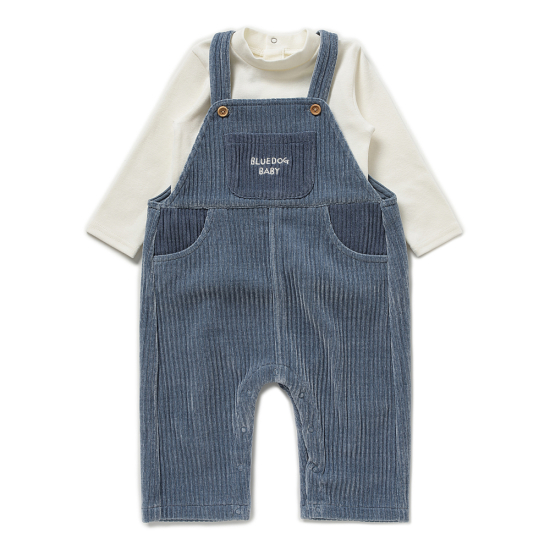 부드럽고 따뜻한 벨로아 소재에 톤온톤 배색으로 포인트를 준 세트형 우주복 입니다.