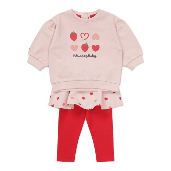 하트패턴 치마 레깅스로 사랑스러움을 더했으며, 겨울 시즌에 등원록으로 활용하기 좋습니다.