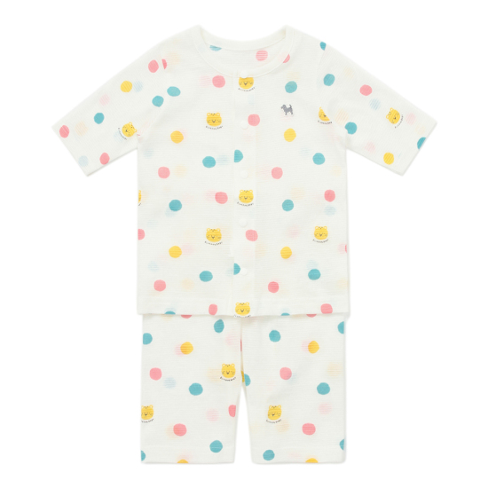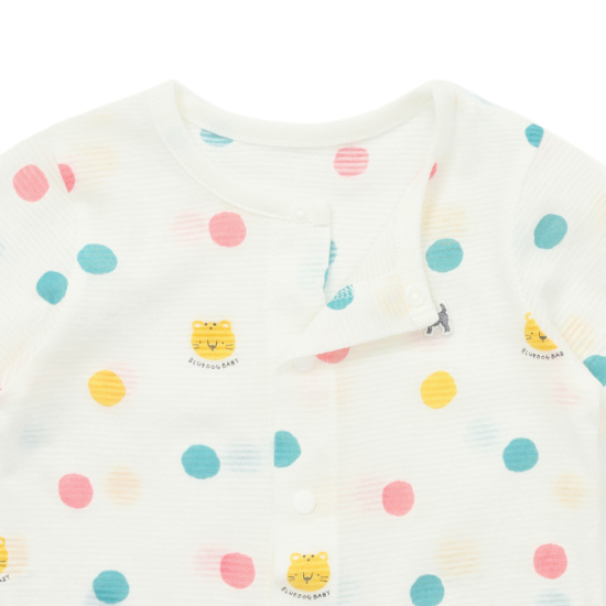 멀티 도트 전판 나염에 강아지 자수로 포인트를 주었습니다.