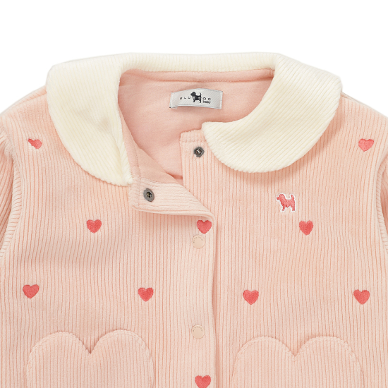 부드럽고 도톰한 소재의 귀여운 미니하트 자수 패턴 디테일이 돋보이는 상하세트 입니다.