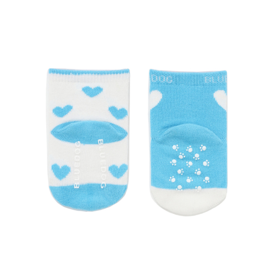 귀여운 하트 패턴에 강아지 자수로 포인트를 주었고 양말과 세트를 구성하여 출산 선물로도 인기가 좋은 아이템 입니다.