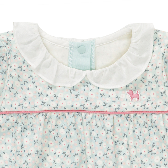 사랑스러운 프릴과 강아지 자수로 포인트를 주었습니다.