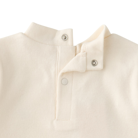후라이스 스판 피치 원단을 사용한 반목 티셔츠 아이템입니다. 앞면에 아미띠에 뮤 로고 자수로 포인트를 주었습니다. 캐주얼하게 입힐 수 있어 아기들에게 선물용으로 좋은 아이템입니다.
