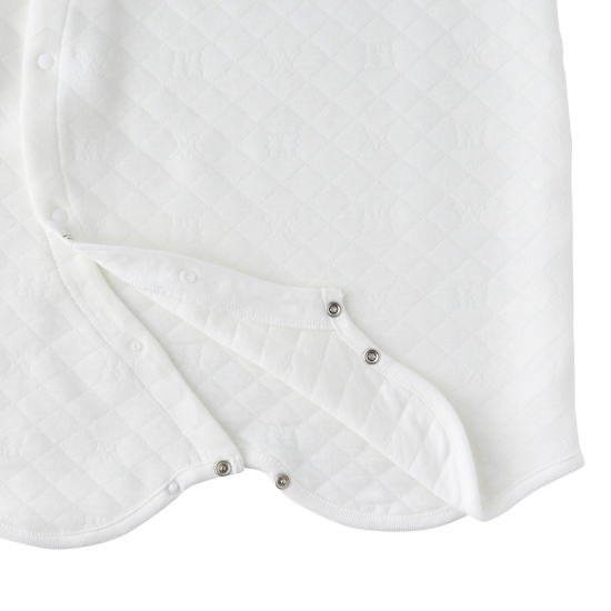 COZY COTTON 라인의 친환경적인 모달소재를 사용한 퀼팅이 들어간 슬리핑 가운입니다. 피부에 닿는 촉감이 부드럽고 올록볼록한 퀼팅 표면이 쾌적한 착용감을 주며 도톰하여 아기의 체온을 유지시켜 줍니다. 깨끗한 아이보리 컬러 몸판에 귀여운 곰 인형과 쁘띠카라로 포인트를 준 디자인으로 아기들에게 선물하기 좋은 아이템입니다.