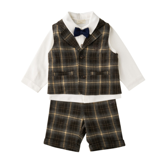 그레이 컬러의 보 타이로 포인트를 주었습니다.베이비부터 토들러까지 트렌디한 스페셜룩으 로 연출 가능한 아이템입니다.