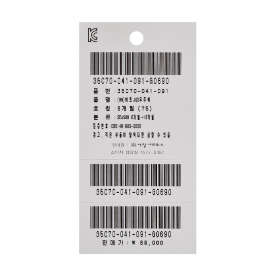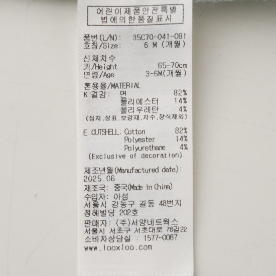 소 재........겉감-면82%,폴리에스터14%,폴리우레탄4%