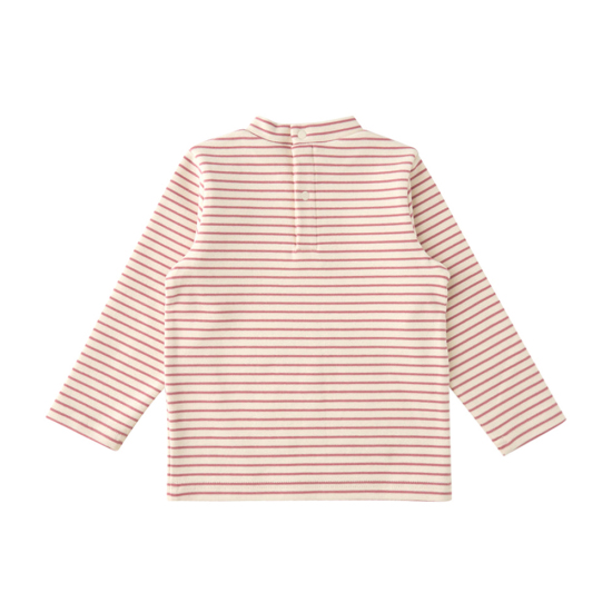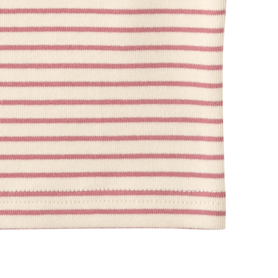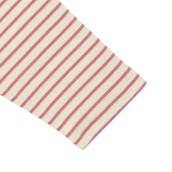 후라이스 스판 피치 소재를 사용한 반목 티셔츠 아이템입니다. 핑크 스트라이프 원단을 사용했으며 앞면에 아미띠에 무 로고자수로 포인트를 주었습니다. 캐주얼하게 입힐 수 있어 아기들에게 선물용으로 좋은 아이템입니다.
