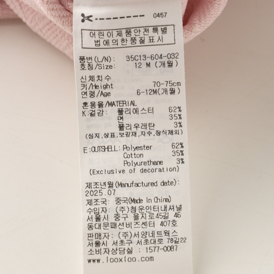 소 재.........[모자:겉감-폴리에스터62%,면35%,폴리우레탄3% / 안감-면100%] [우주복:겉감-폴리에스터62%,면35%,폴리우레탄3%]