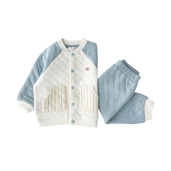 퀼팅지 상하복 SET 아이템 입니다. 마름모 모양 퀄팅(누빔) 속 에는 솜이 들어있어, 따뜻하고 부드러운 느낌을 줍니다.