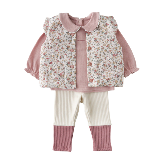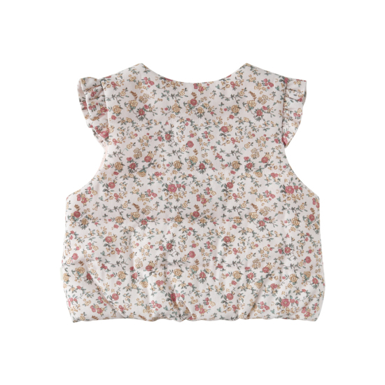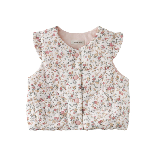 가든플라워 패턴의 퀼 팅 베스트와 부드러운 아일렛 소재의 상의와