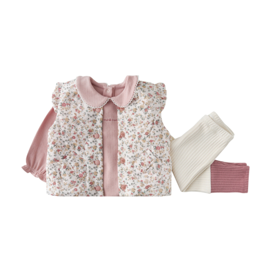 소프트한 핑크 계열의 가든플라워베스트SET상하복입니다.