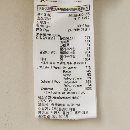 • 본 상품은 어린이제품 안전특별법 안전확인 대상품목으로 아래의 어린이제품 안전특별법 안전확인 을(를) 필하였습니다.